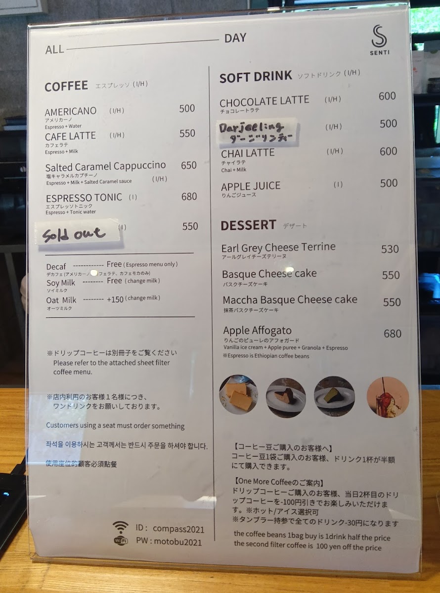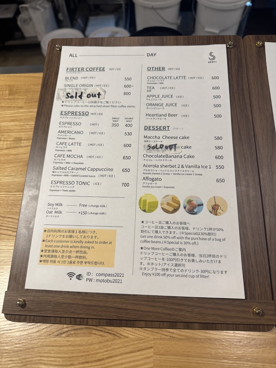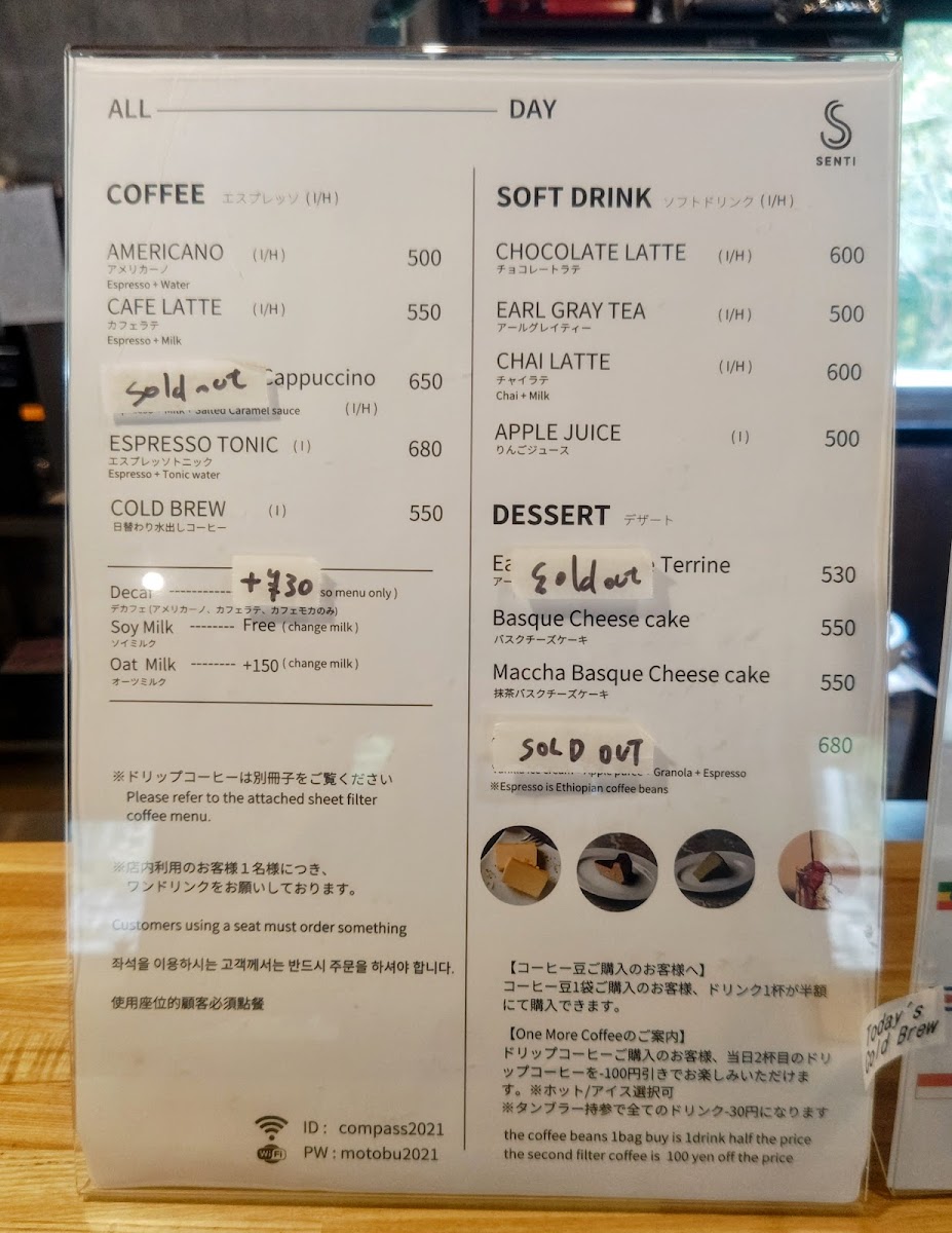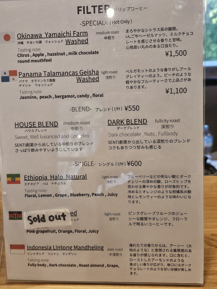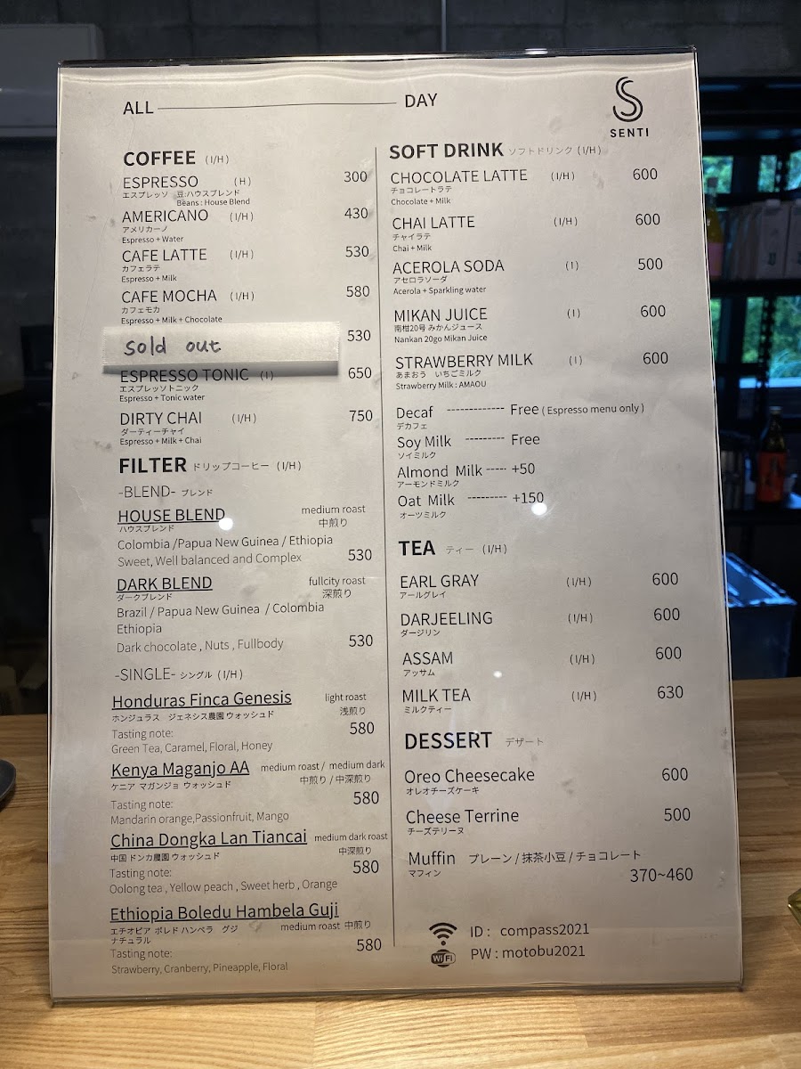 Welcome to Coffee Senti, a delightful café nestled in the lush surroundings of Okinawa, Japan. Located at 1241-11 Namizato, Motobu, this charming spot is an essential stop for coffee lovers. Their menu features an exquisite range of beverages, including the rich caffè latte for JP¥600 and a delightful hot chai latte that's beautifully balanced without overwhelming sweetness.